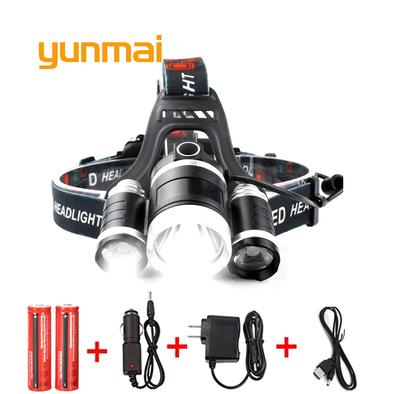 yunmai USB Power Led Headlight Headlamp lumen NEW xml t6+2Q5 Head Lamp Torch 18650 Battery Hunting Fishing Light