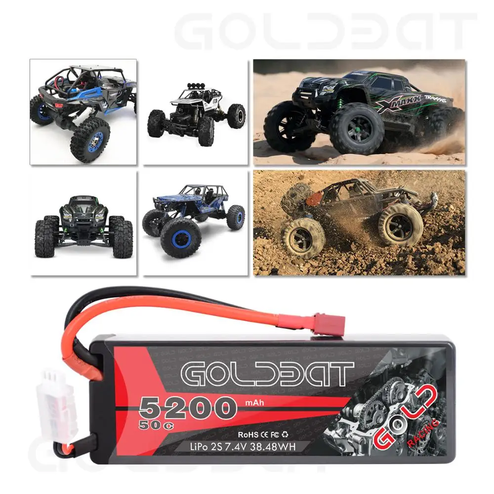 Big Promo 2units GOLDBAT 5200mAh Lipo Battery 7.4V 50C 2S LiPo RC Battery with Deans Plug for RC Evader BX Ca