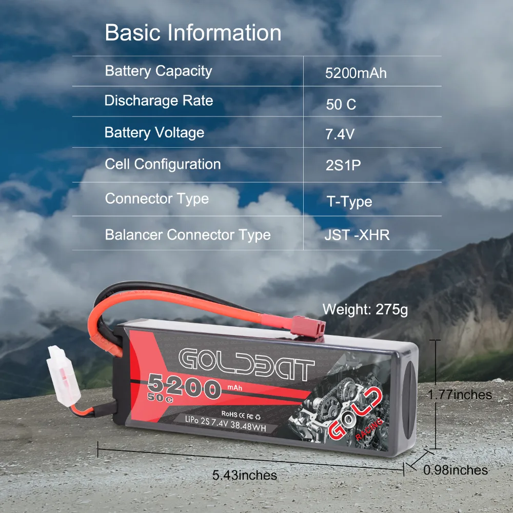 GOLDBAT 3S 5200mAh 11.1V 50C LiPo RC Battery with Deans Plug and XT60 Connector for RC Evader BX Car RC Truck RC Heli Airplane
