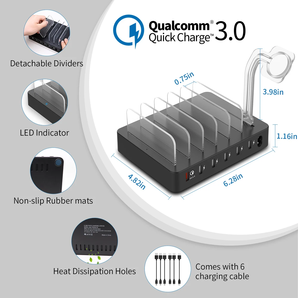 Best Seller NTONPOWER Fast Charging Station Dock 60W Multi-port USB charger with Quick Charge QC 3.0 for iphone