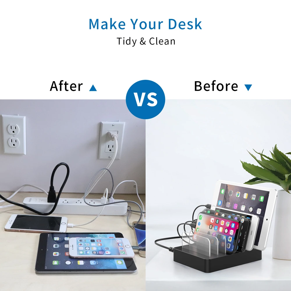 NTONPOWER 5 Ports USB Charger Desktop charger Station 5V 2.4A Charging for Mobile Phone and Tablet with Phone Holder