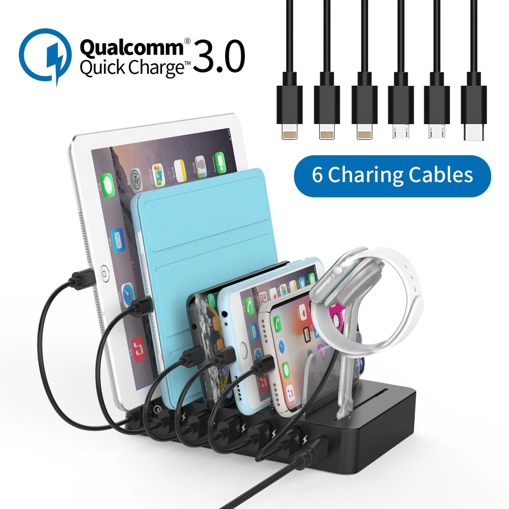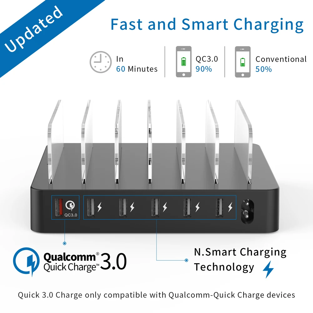 Best Deal NTONPOWER Fast Charging Station Dock 60W Multi-port USB charger with Quick Charge QC 3.0 for iphone