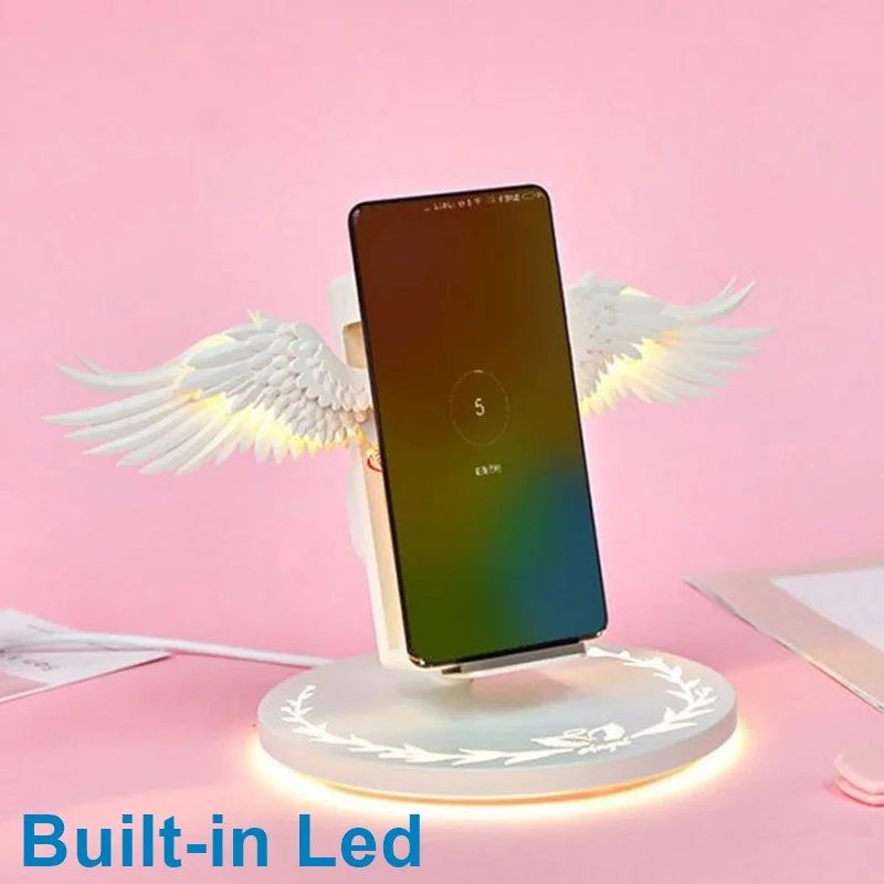 Best Product Angel Wings charging 10W Fast qi Wireless Charger Mobile Phone holder LED Light for iPhone 8 Plus X