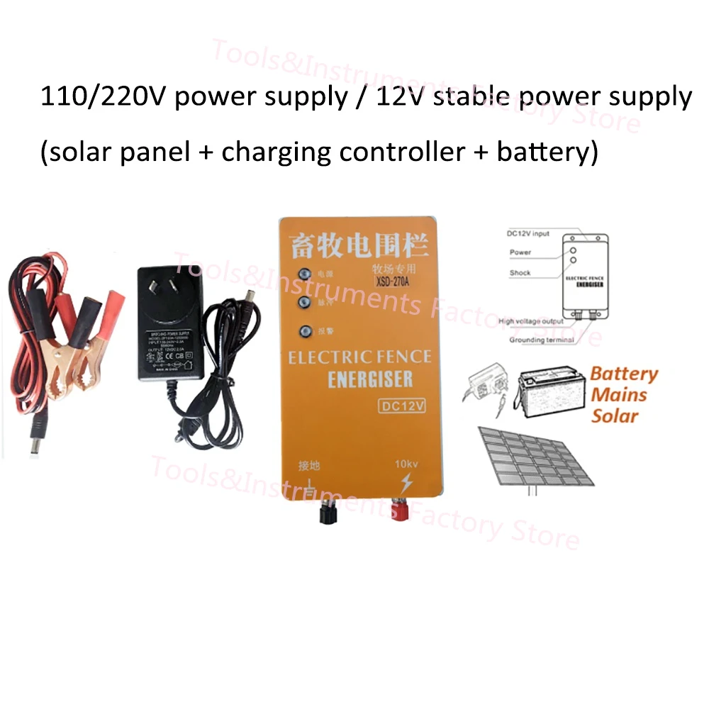 10KM Solar Electric Fence Energizer Charger High Voltage Pulse Controller Animal Electric Fence Breeding Fence Pastor XSD-280B