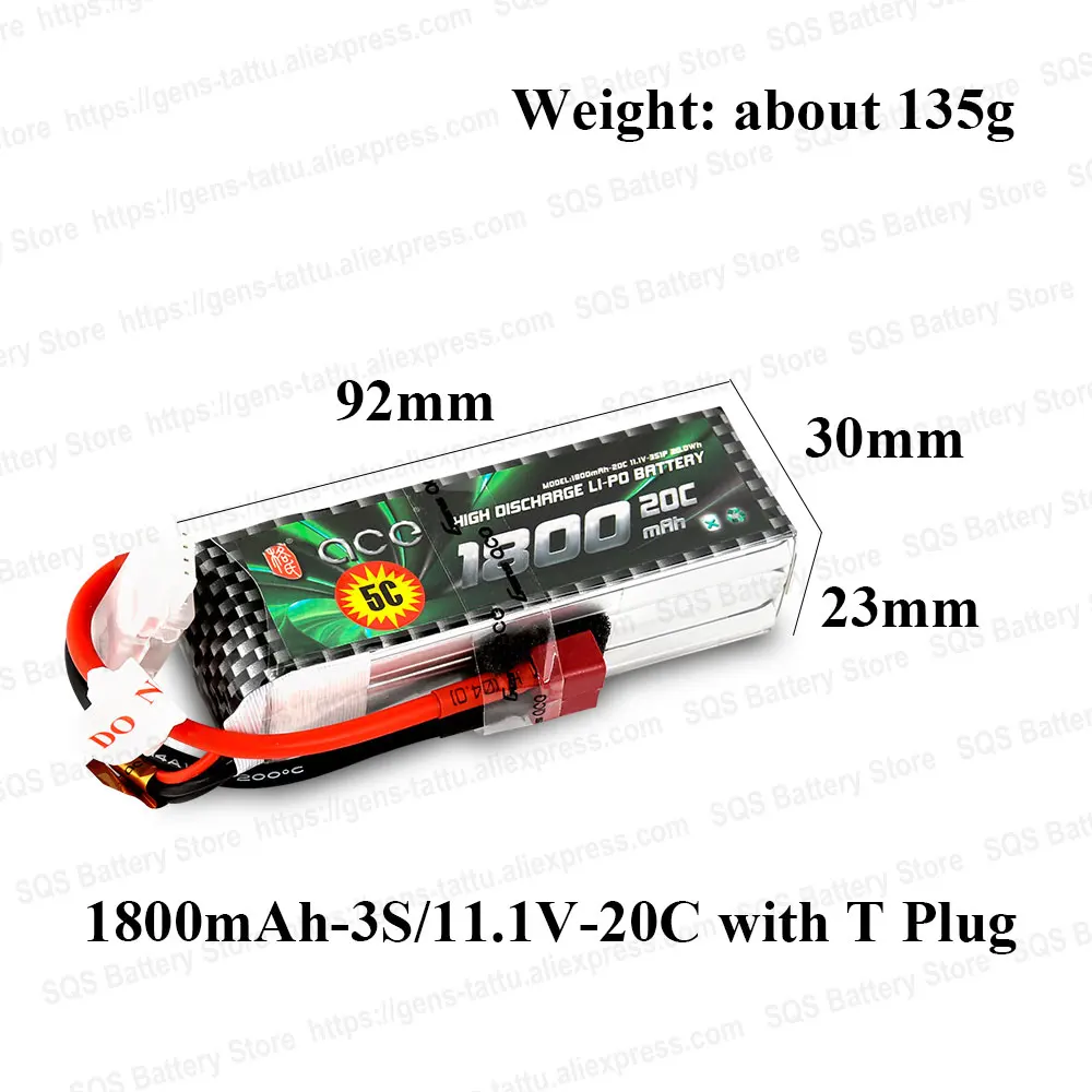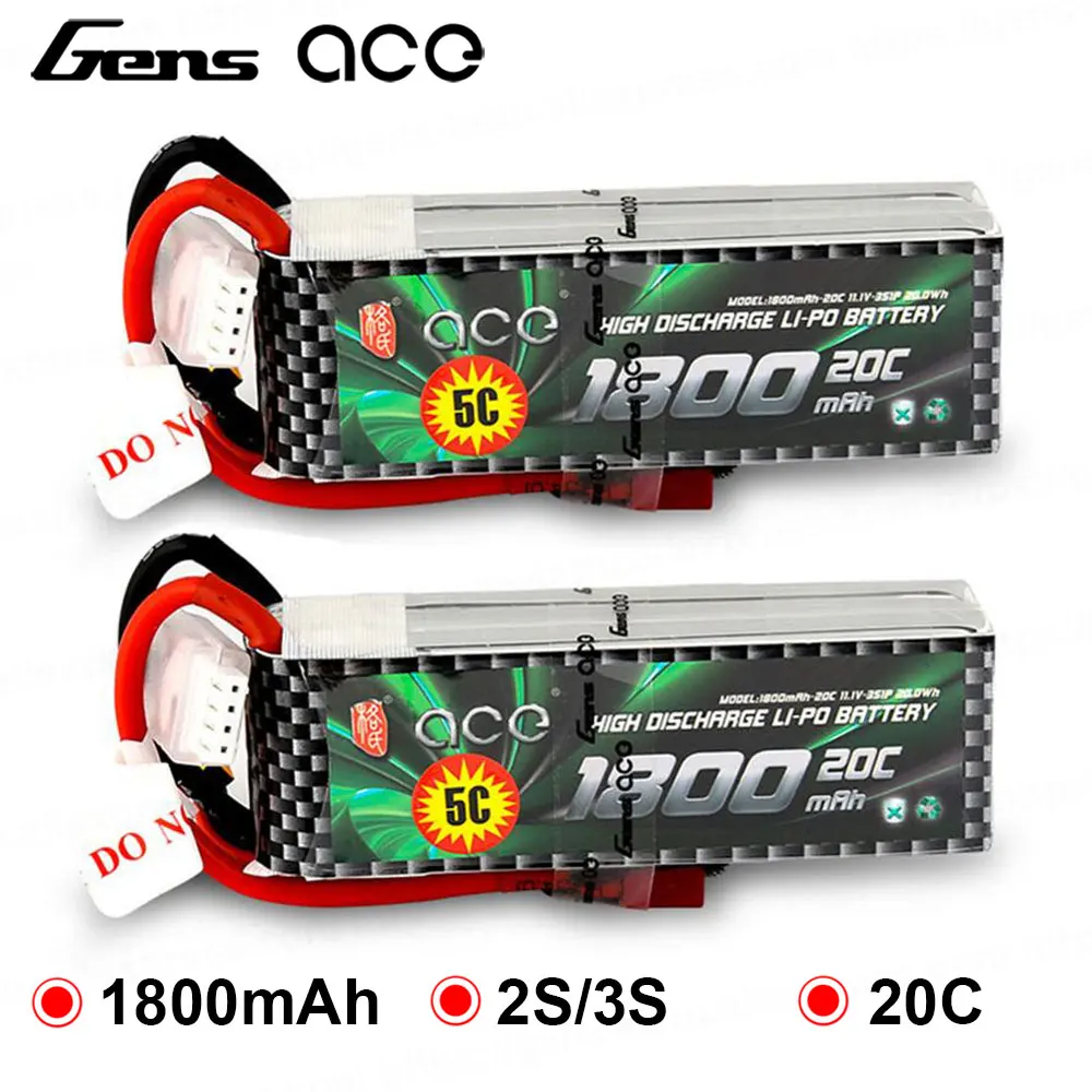 Gens ace 2S 3S Lipo Battery 1800mAh 7.4V 11.1V 20C-40C Deans Plug Battery Pack for Helicopter Small 1:16 Car E dedicated