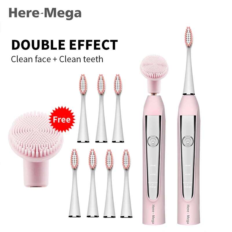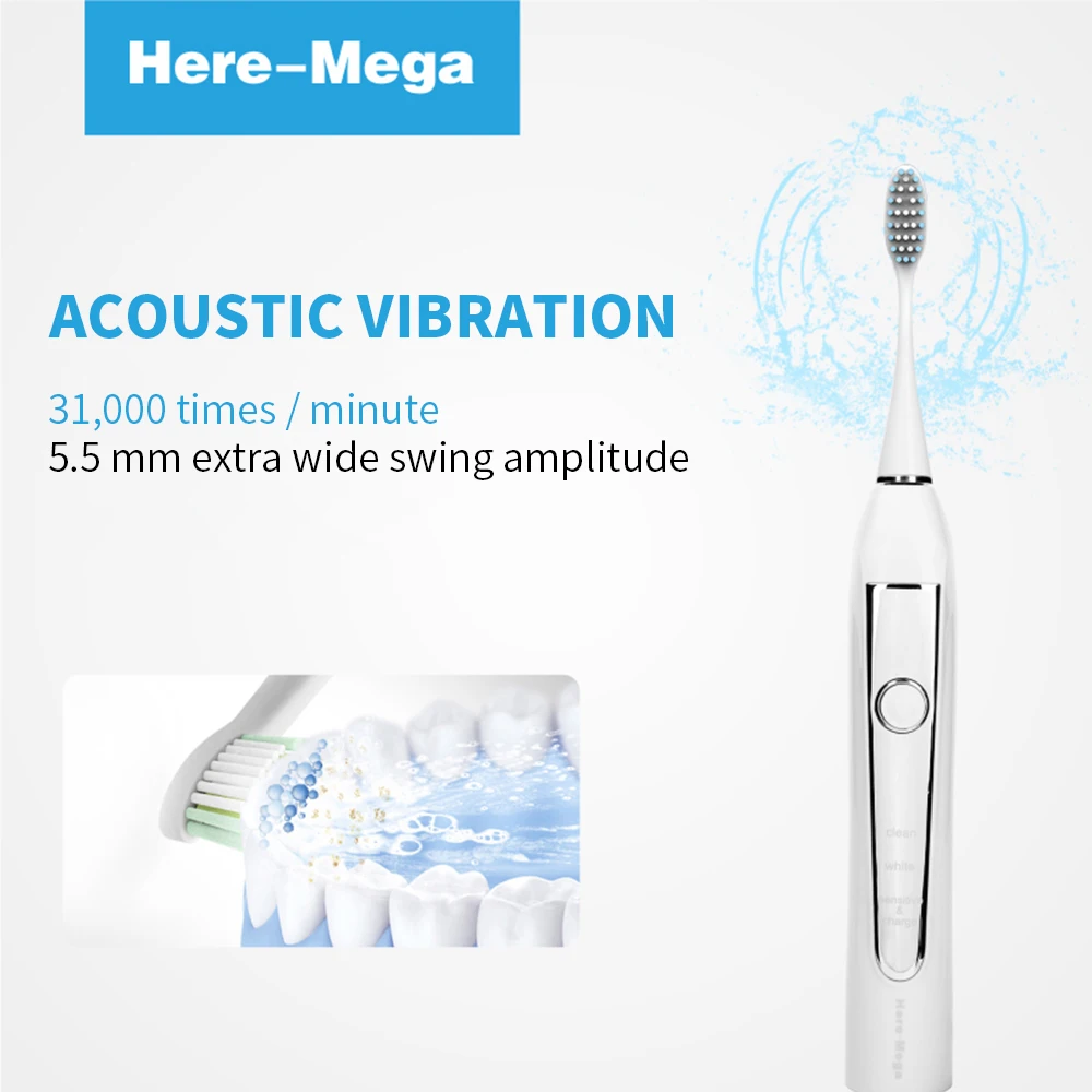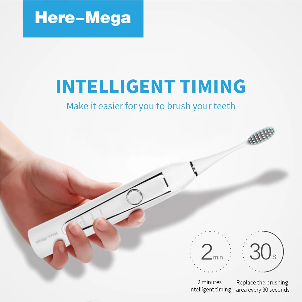 Here Mega Electric Toothbrush Rotating Adult Toothbrush USB Charging Waterproof Cleaning Toothbrush Heads Replaceable Smart R02