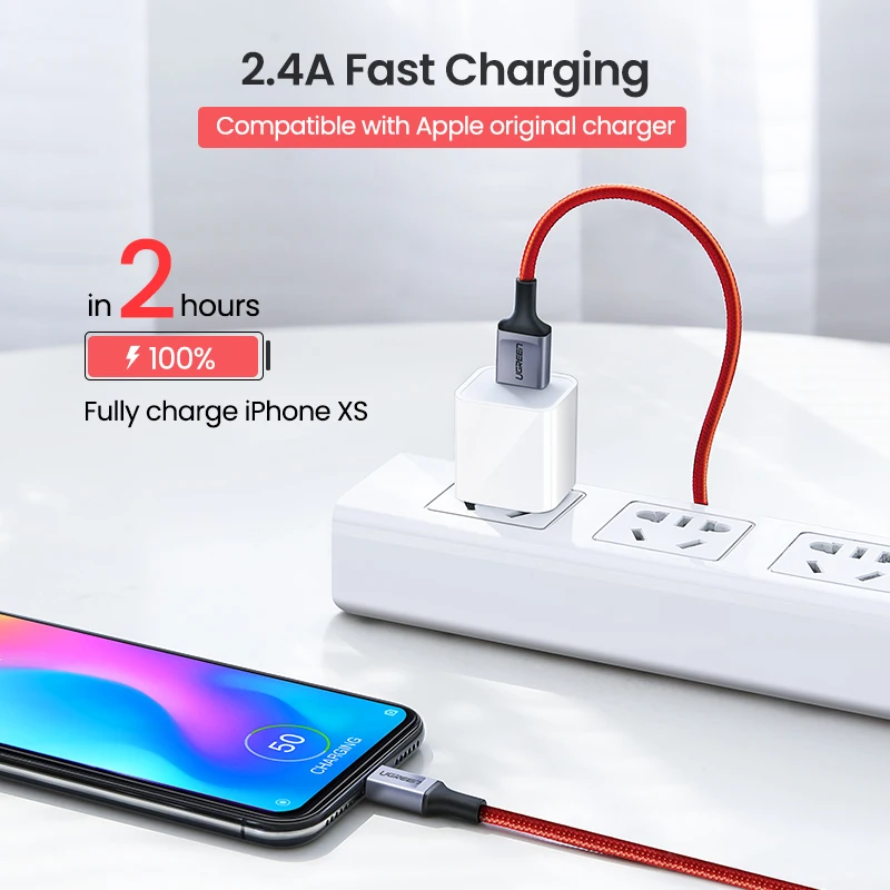 Ugreen MFi Lightning USB Cable for iPhone 11 X XS Max 2.4A Fast Charging Data Cable for iPhone 8 7 6 6s Plus Mobile Phone Cable
