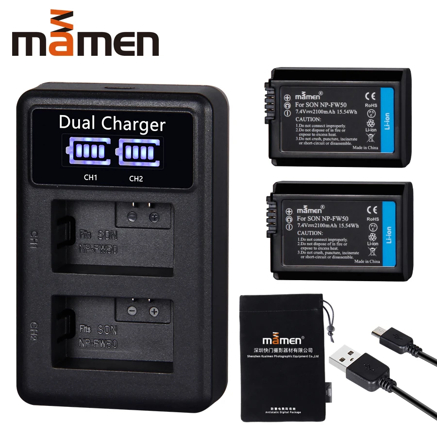 Big Promo 2pcs 2100mAh NP-FW50 NP FW50 Digital Camera Battery +LCD USB Dual Charger for Sony NEX-3 a7R Alpha