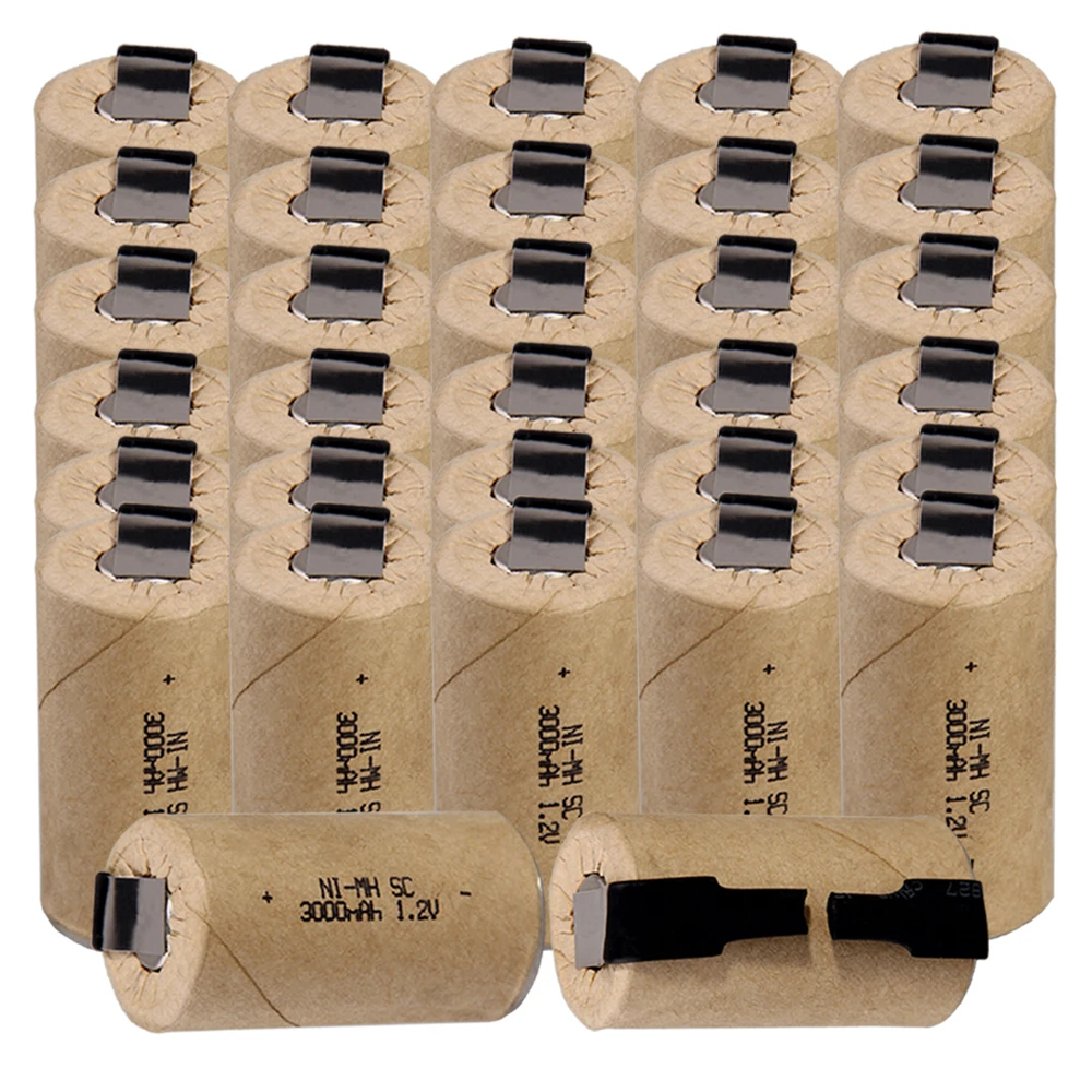20 pcs SC 3000mah 1.2v battery NIMH rechargeable batteries for electric screwdriver electric drill 4.25cm*2.2cm for power tools