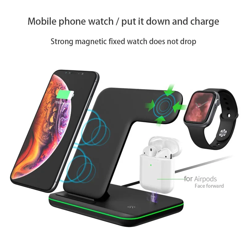 3 in 1 10W Qi Wireless Charger for iPhone XR Samsung Fast Wireless Charging Station for Apple watch 4 3 2 1 Airpods Charger Dock