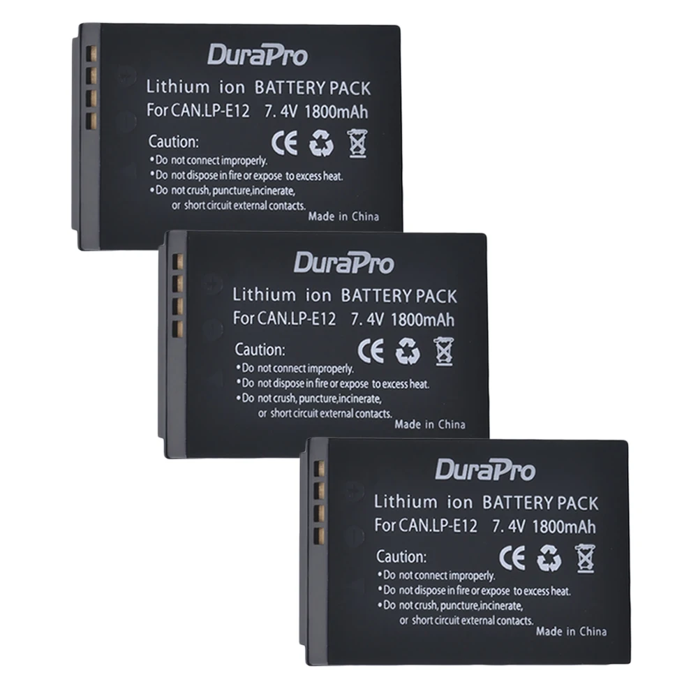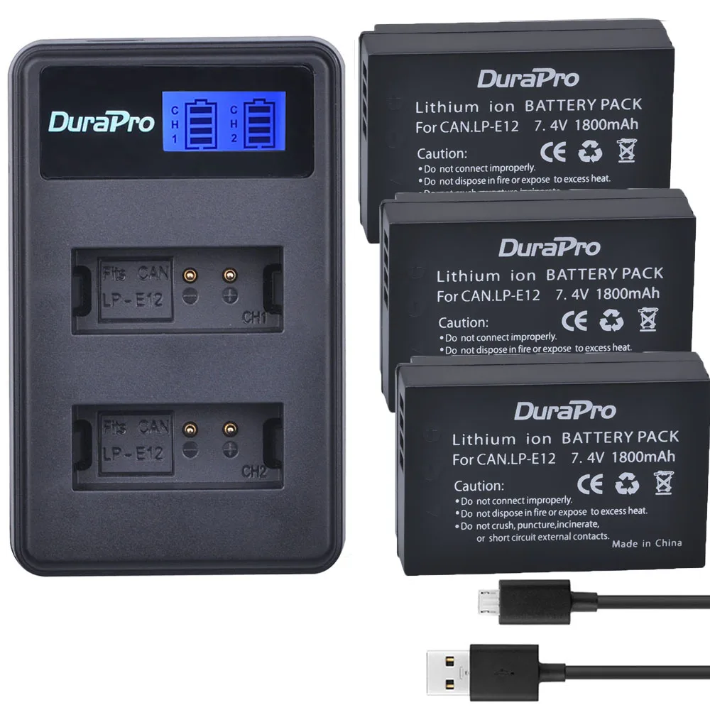 Big Promo 3 x DuraPro LP-E12 LPE12 LP E12 Camera Battery Bateria Batterie AKKU + LCD USB Charger For Canon M