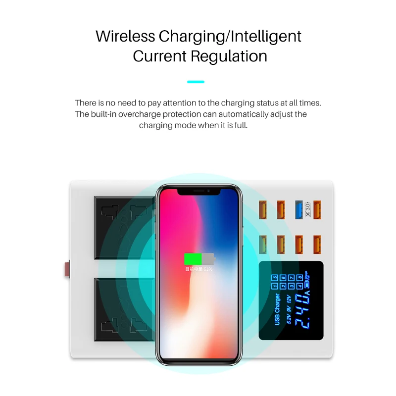 Hot Sale QC3.0 Quick Charger Wireless 8 port USB Charger Smart Universal for iphone X 7 Samsung S10 Xiaomi D