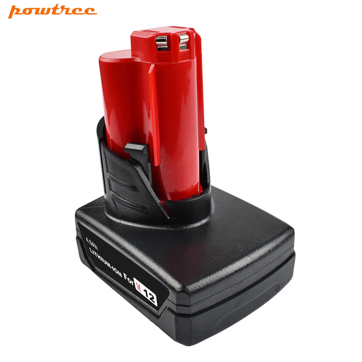 Powtree For Milwaukee 4000mAh 12V M12 Power Tool Li-ion Battery Replacement C12 B C12 BX C12 D C12 WS M12 IR M12 J