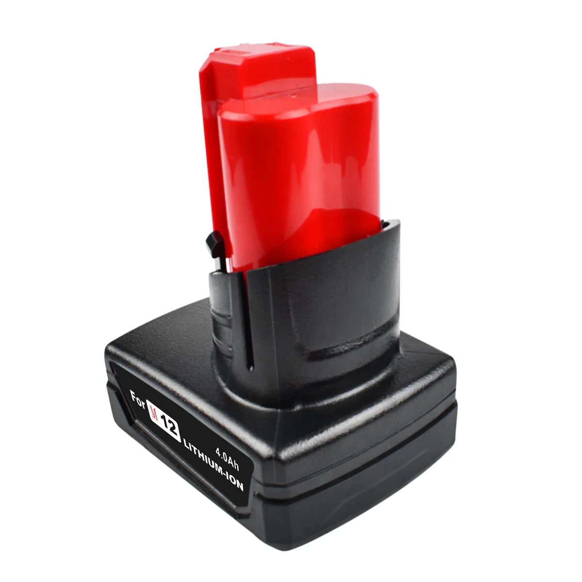 Powtree For Milwaukee High Capacity 4000mAh 12V M12 Red Power Tool Battery Replacement C12 B C12 BX 48-11-2401 48-11-2402 C12 D