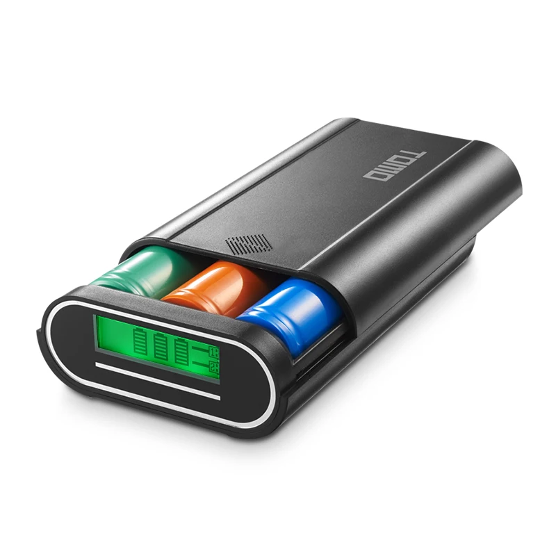 TOMO 18650 charger powerbank case S4 lithium battery storage diy box LCD display Type C 3 USB input ports
