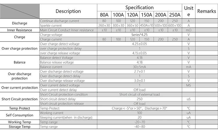 Lithium battery 3S 4S 6S 7S 10S 15S 16S 17S 20S 21S 24S 28S BMS Li-ion battery Management System BMS 250A with high current